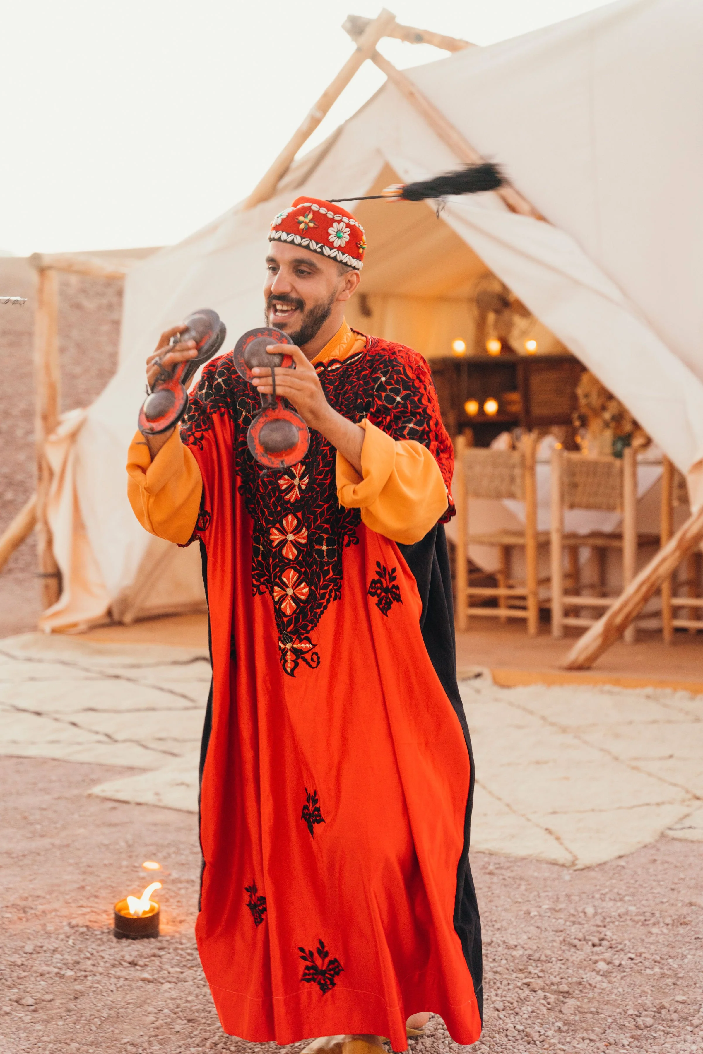 In the Sahara, peacefully away from the connected world, we’ll sleep under a blanket drenched by the Milky Way stars and bathe in the light amidst golden desert hues. Indescribable, vast and otherworldly, the swirling sands will embrace us as we enjoy a delicious traditional dinner followed by heartfelt music around the campfire and rest our heads in luxurious tents equipped with full bathrooms.